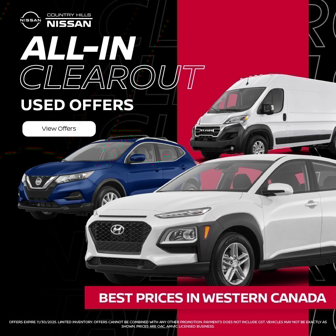 Country Hills Nissan also offers a huge selection of pre-owned vehicles from a wide range of makes and models at our dealership in Northeast Calgary. Our team of certified technicians guarantees that all our used vehicles are thoroughly inspected for quality and reliability. In addition, you can also sell us your vehicle for cash or trade-in value, and save even more on your vehicle purchase thanks to our regular used vehicle specials!