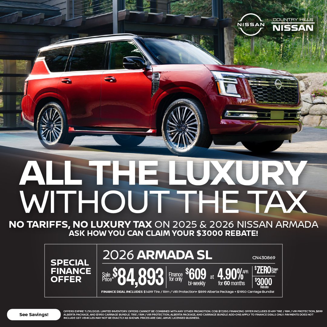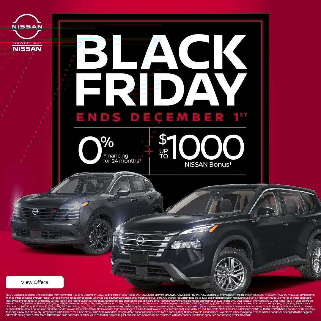 As an AMVIC-licensed business, Country Hills Nissan is your first and last stop for brand new cars, trucks, and SUVs from Nissan, including popular models like the Versa, Murano, and Kicks. Browse our wide inventory of new vehicles and be sure to keep an eye out for our new vehicle specials to save even more on your next purchase. Contact us today and let our team of experienced sales advisors help you find your next ride.
